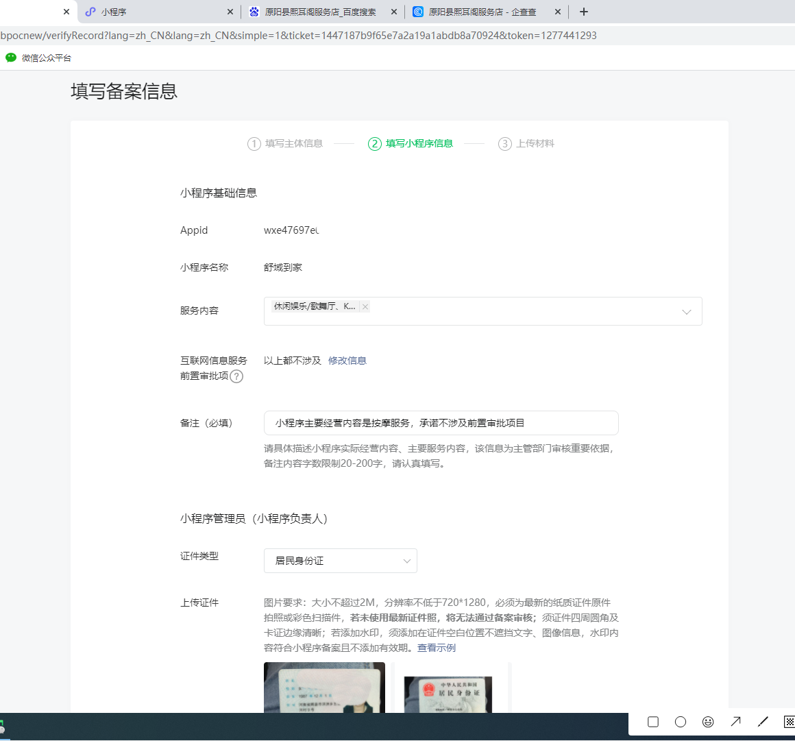 七、填寫小程序信息:小程序名稱必須顯示可使用、簡稱可以不填、頭像找管理員要相關的、介紹是名稱+歡迎你
