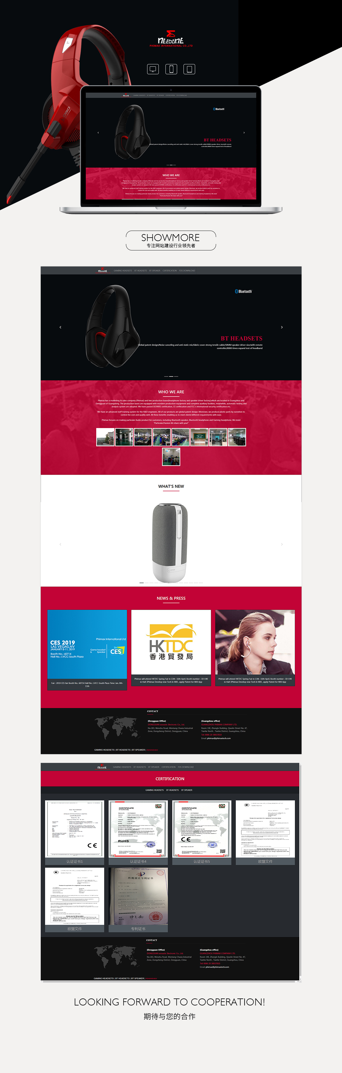 Phimax has a marketing & sales company (Phimax) and two production bases(headphone factory and speaker driver factory),which are located in Guangzhou and Donggu